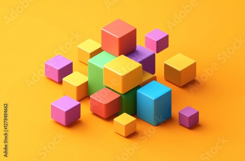 © Minang Art_Studio, Fototapeta premium Colorful blocks scattered on orange background.