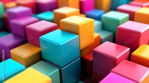 © Rstm, Fototapeta premium Colorful blocks stacked in a random pattern.