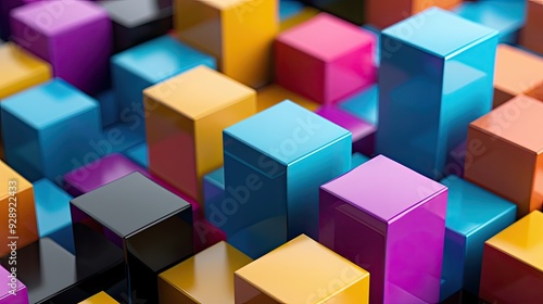 © Smart AI, Fototapeta premium Colorful Blocks Stacked in a Tower Formation for Creative Projects