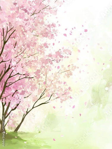 Fototapeta premium Colorful blossoms adorn gentle trees in a lush spring landscape, inviting a dreamy and whimsical atmosphere filled with soft pastel hues and delicate brushstrokes