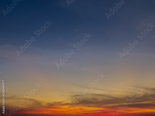 © Yoona, Obraz premium Colorful blue orange sky at sunset, shadow of clouds background