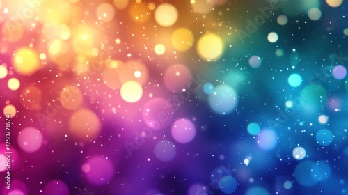 © @_ greta, Obraz premium Colorful Bokeh Lights Background with Sparkling Dust Particles Overlay