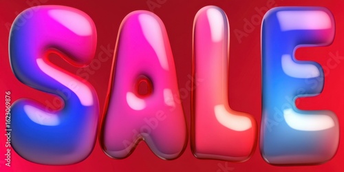© Photoland, Fototapeta premium Colorful bold sale lettering on red gradient background for promotion banner, advertising, shopping or marketing announcement, retail event.