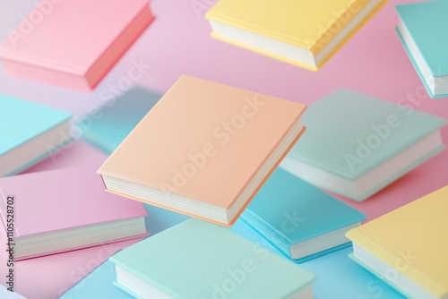 © Gatherina, Fototapeta premium Colorful books floating on pastel background for education or literature concepts