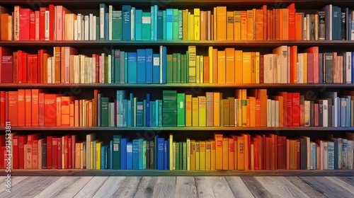 Fototapeta premium Colorful Bookshelf Background With Wooden Floor and Vibrant Design in a Cozy...