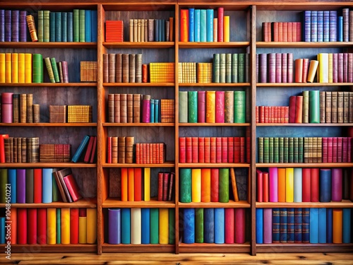 Fototapeta premium Colorful Bookshelf Filled with Vibrant Books Perfect for Book Lovers and...