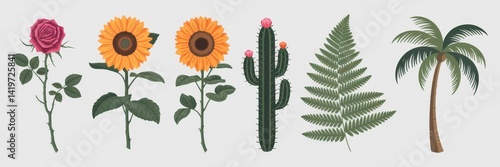 Fototapeta premium Colorful botanical illustration of various plants