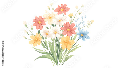 Naklejka premium Colorful bouquet of flowers in various shades of pink, yellow, white and blue.