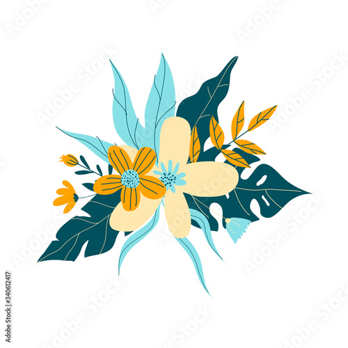 © Анна Якунина, Fototapeta premium Colorful Bouquet with Flowers and Branches Vector Composition