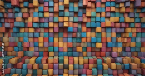 Fototapeta premium Colorful box blocks background with random shift, white cube, box wall art,...