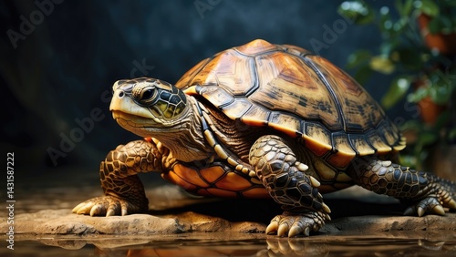© suja, Obraz premium "Colorful Box Turtle on Ground – Wildlife Reptile Close-Up Image"