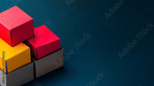 © Teerapat, Obraz premium Colorful Boxes on Dark Background