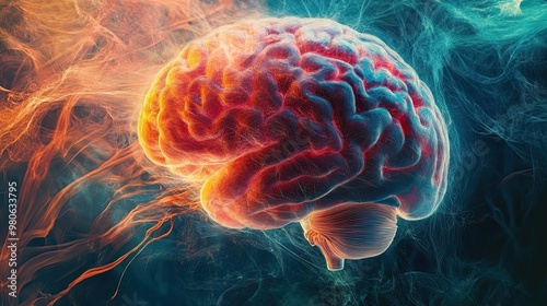 Fototapeta premium Colorful Brain Illustration with Abstract Background