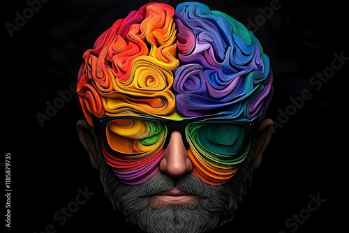 Naklejka premium Colorful Brain Waves Flow and Illuminate, Mind Creates Art with Rainbow Hues