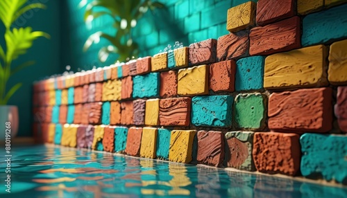 © BOJOShop, Obraz premium Colorful Brick Wall Poolside.