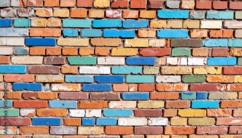 Obraz premium Colorful Brick Wall Texture Background Vibrant Multicolored Brickwork.