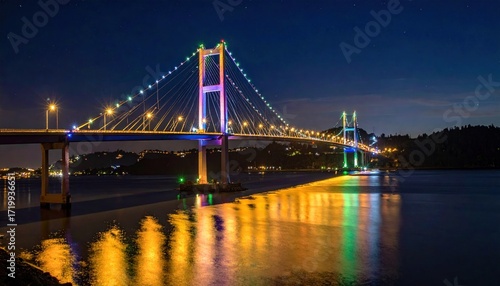 © KASANUN, Fototapeta premium Colorful bridge at night