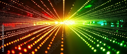 © Koplexs-Stock, Naklejka premium Colorful bright lights travel through a dark background space
