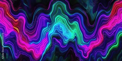 Fototapeta premium Colorful bright vibrant abstract wave fluid neon pattern with lines and texture creating psychedelic background art. Electric dynamic decorative liquid design for modern visual projects.