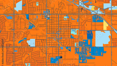 © Knut Hebstreit, Obraz premium Colorful Broken Arrow Street Map with Labels and Buildings