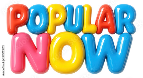 Fototapeta premium Colorful bubble text sticker with POPULAR NOW in glossy, vibrant style for an...