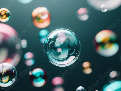 © ANNetz_PK, Naklejka premium Colorful bubbles floating on a dark background, abstract, bokeh effect