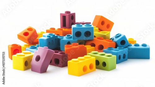 © Isolated studio, Obraz premium Colorful Building Blocks Isolated on White Background for Creative Play and Educational Activities, Ideal for Children’s Toys and Learning Experiences