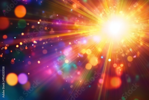 Fototapeta premium Colorful burst of light with bokeh effects in an abstract setting during a...