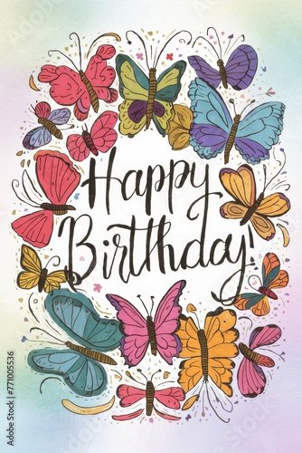 © TKMedia, Fototapeta premium Colorful Butterflies Birthday Card