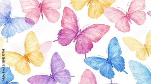© nikomsolftwaer, Obraz premium Colorful butterflies flying nature scene watercolor art vibrant environment close-up view beauty of nature