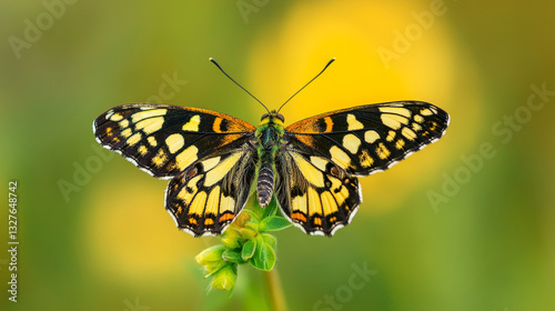 Fototapeta premium Colorful butterflies with abstract decorative pattern summer free fly present...