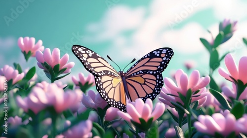 Fototapeta premium Colorful Butterfly Among Vibrant Spring Flowers