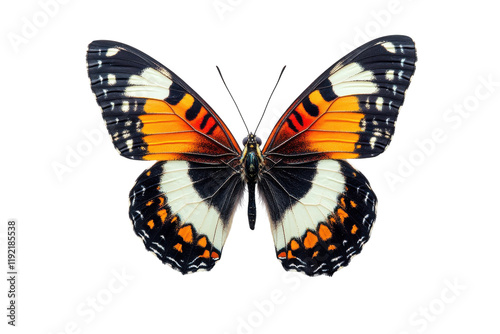 © Hafsa, Fototapeta premium Colorful butterfly displaying vibrant patterns with spread wings against a white background