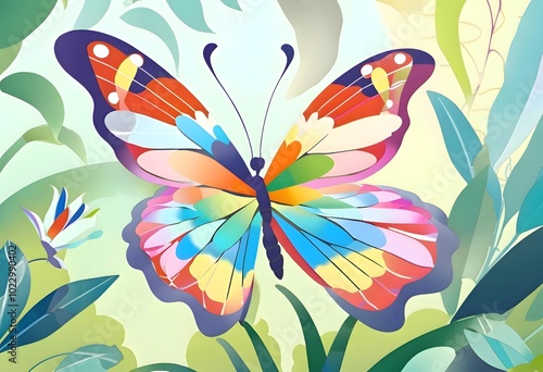© Wuttichai, Obraz premium Colorful Butterfly in Lush Abstract Garden Scene