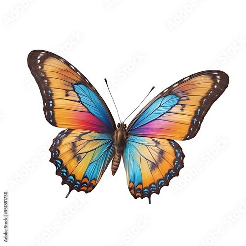 Fototapeta premium Colorful butterfly, isolated on white background.