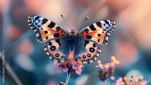 © Anurak, Obraz premium Colorful Butterfly on Pink Flower.