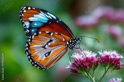 Fototapeta premium Colorful Butterfly on Purple Flower in Nature