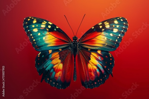© Custom Media, Obraz premium Colorful Butterfly on Red Background