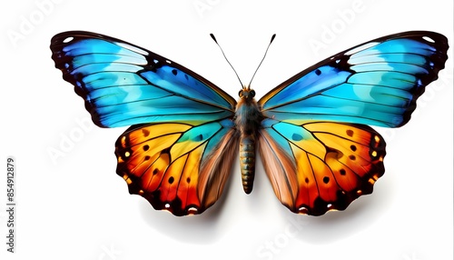 © Toseef, Fototapeta premium Colorful butterfly on white background, Ai Generated