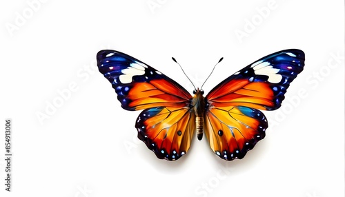 © Toseef, Fototapeta premium Colorful butterfly on white background, Ai Generated