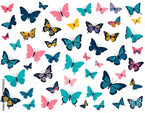 © Bodrex, Fototapeta premium Colorful butterfly pattern on white background