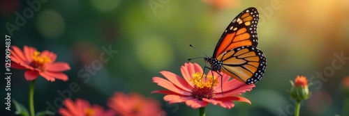 Fototapeta premium Colorful butterfly perched on a flower with delicate petals, insect, flowers,...