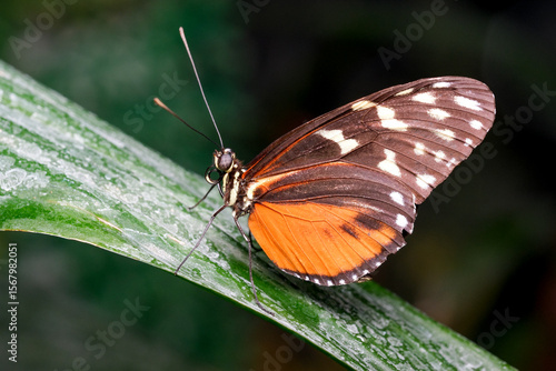 Obraz premium Colorful butterfly perched on a leaf in vibrant tropical surroundings