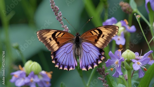Naklejka premium Colorful butterfly perched on blooming flowers with vibrant petals in a...