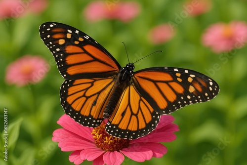 Obraz premium Colorful butterfly settled on a vibrant pink flower