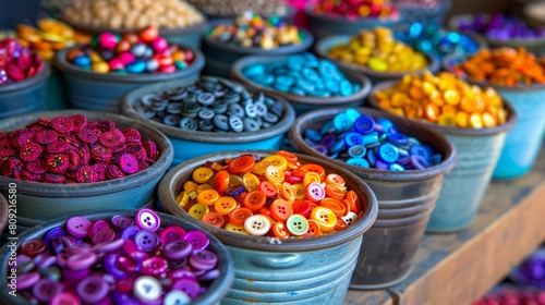Fototapeta premium Colorful buttons in bowls at a market stall