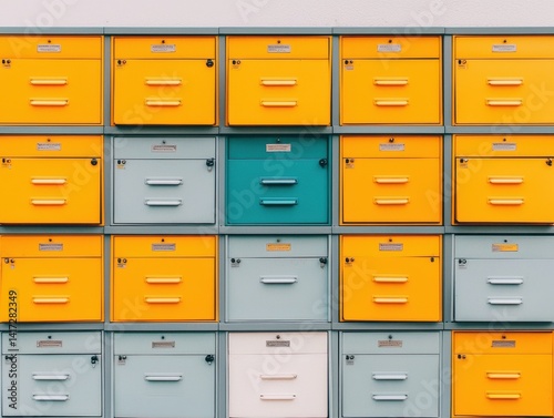 Fototapeta premium Colorful Cabinets with Drawers for Organizing Storage Solutions