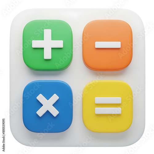 © Jannat, Fototapeta premium Colorful calculator app icon with basic math symbols
