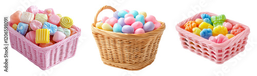 Naklejka premium Colorful Candy and Easter Egg Baskets on Transparent Background