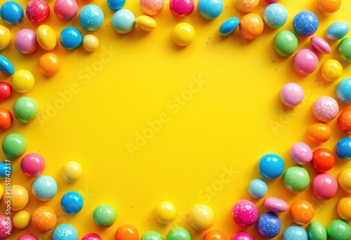 © AFFANYUDA, Obraz premium Colorful candy dots frame bright yellow background